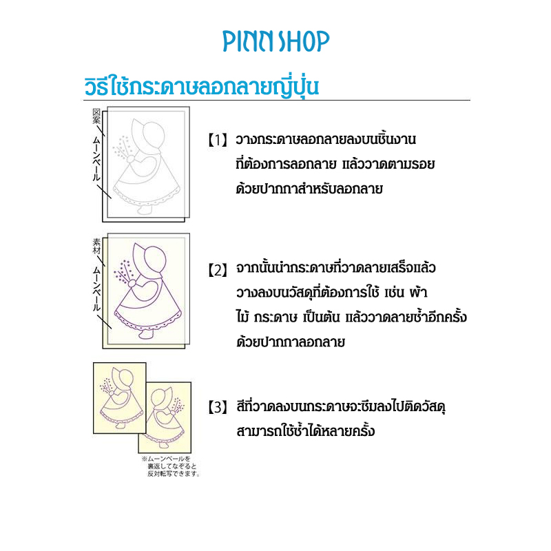 ใช้สำหรับลอกลวดลายที่ต้องการลงบนผ้า เนื้อกระดาษละเอียด เหนียว มีความทนทานสามารถใช้ซ้ำได้หลายครั้ง