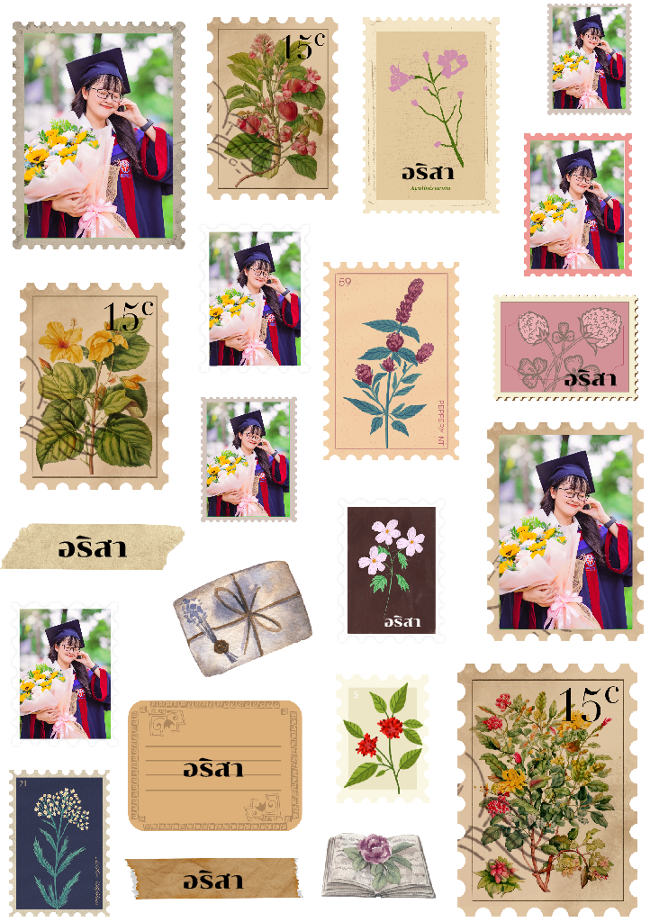 สติกเกอร์ UV DTF ลาย Floral Stamp Garden ดีไซน์แสตมป์ดอกไม้สไตล์วินเทจ ผสมผสานความละมุนของภาพวาดพฤกษศาสตร์กับความสดใสของการเฉลิมฉลอง เหมาะสำหรับตกแต่งของใช้ส่วนตัว เช่น ขวดน้ำ กล่องข้าว เคสมือถือ หรือสมุดโน้ต ใช้เป็นของขวัญหรือของชำร่วยในโอกาสพิเศษ จุดเด่นคือสามารถใส่ชื่อและรูปภาพลงในกรอบแสตมป์หรือป้ายตกแต่งได้ เพิ่มความน่ารักและความหมายเฉพาะตัวให้กับชิ้นงาน สติกเกอร์มีคุณสมบัติกันน้ำ ทนทาน สีสดใส และผิวสัมผัสเงางาม เหมาะสำหรับงาน DIY และของขวัญที่ต้องการความพิเศษในสไตล์ธรรมชาติและวินเทจ