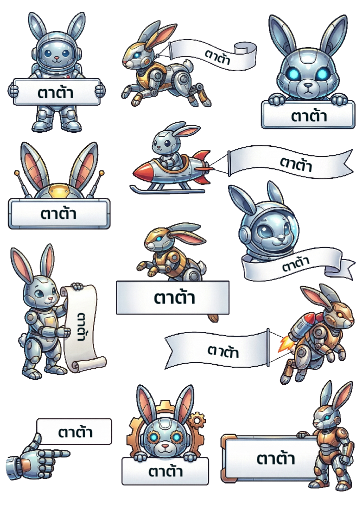 คอลเลคชั่น Mecha Bunny รวมเหล่ากระต่ายแฟนตาซีในสไตล์หุ่นยนต์และไซไฟสุดล้ำ ดีไซน์กระต่ายในหลากหลายท่วงท่าและเครื่องแต่งกายเชิงกล เช่น เกียร์ โลหะ กลไก และดวงตาเรืองแสง กรอบป้ายถูกออกแบบให้สามารถ ใส่ชื่อได้ เพิ่มความพิเศษและความหมายเฉพาะตัวให้กับสติกเกอร์ เหมาะสำหรับตกแต่งของใช้ส่วนตัว เช่น กล่องข้าว ขวดน้ำ เคสมือถือ สมุดโน้ต หรือใช้เป็นของขวัญและของชำร่วยในโอกาสพิเศษ ดีไซน์โทนสีสดใสผสมประกายโลหะและบรรยากาศไซไฟ สร้างความรู้สึกล้ำสมัยและสนุกสนาน สติกเกอร์ผลิตด้วยเทคนิค UV DTF คุณภาพสูง กันน้ำ ทนทาน สีสดคมชัด และผิวสัมผัสเงางาม เหมาะสำหรับงาน DIY และผู้ที่ชื่นชอบธีมกระต่ายแฟนตาซีแนวไซไฟที่สามารถปรับแต่งได้ตามใจ
