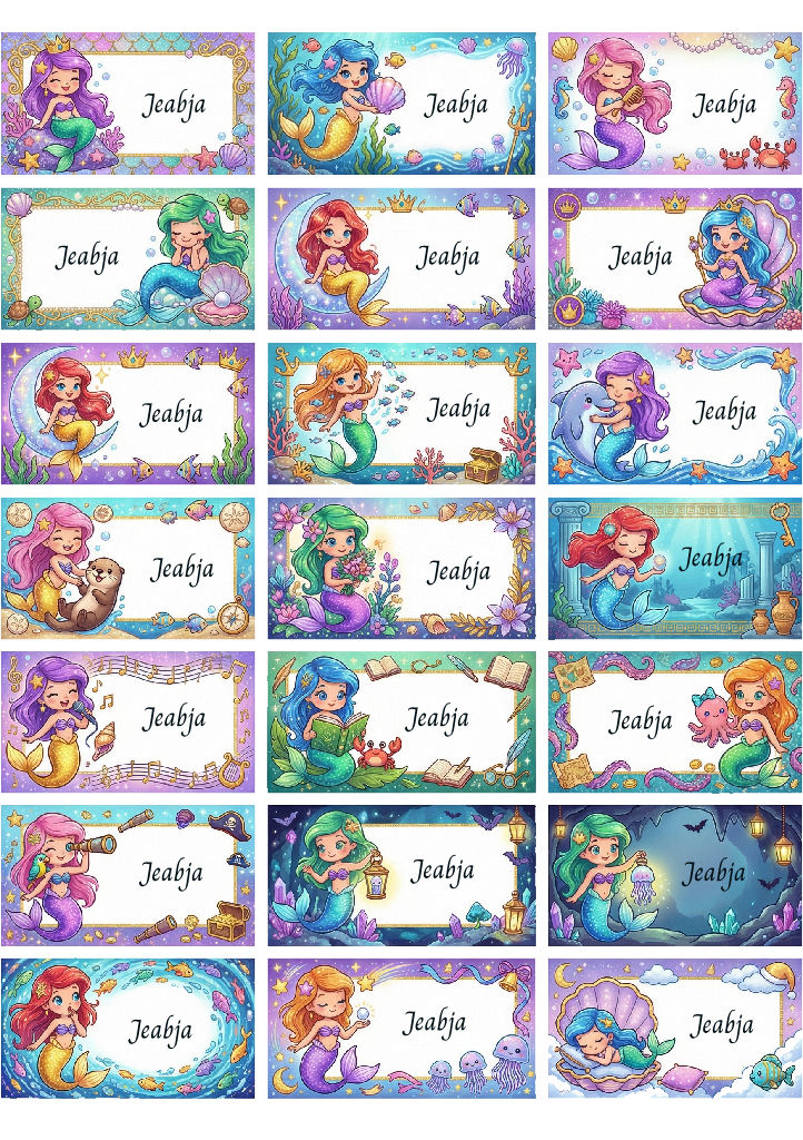 ดำดิ่งสู่โลกใต้ทะเลแสนหวานกับสติกเกอร์ลายเมอร์เมดน้อยสุดน่ารักที่มาพร้อมความสดใส! ความพิเศษสุดว้าวของดีไซน์นี้คือ **คุณสามารถระบุชื่อหรือข้อความของคุณเองลงบนสติกเกอร์ได้** เปลี่ยนสติกเกอร์ธรรมดาให้กลายเป็นของใช้ส่วนตัวที่มีเพียงชิ้นเดียวในโลก ไม่ซ้ำใคร! ในหนึ่งแผ่นขนาด A5 อัดแน่นไปด้วยลายเมอร์เมดหลากสไตล์ ทั้งร้องเพลง อ่านหนังสือ และเล่นกับสัตว์น้ำ เหมาะอย่างยิ่งสำหรับน้องๆ หนูๆ ใช้ติดสมุด หนังสือ กล่องดินสอ หรือของใช้ส่วนตัวเพื่อแสดงความเป็นเจ้าของ สีสันพาสเทลสวยงาม คมชัด จะซื้อใช้เองก็น่ารัก หรือมอบเป็นของขวัญวันเกิดก็สร้างความประทับใจได้แน่นอน สร้างความพิเศษให้ของใช้ของคุณด้วยสติกเกอร์ชื่อเมอร์เมดแสนกลชุดนี้เลย!