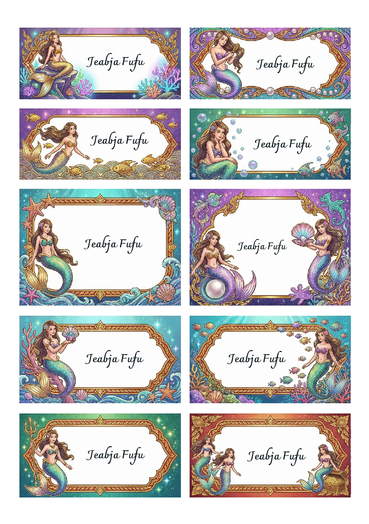 คอลเลคชั่น Thai Elegance Mermaid โดดเด่นด้วยกรอบป้ายชื่อที่ได้รับแรงบันดาลใจจาก ลวดลายไทยอ่อนช้อย ผสมผสานกับความน่ารักของนางเงือกและบรรยากาศแฟนตาซีใต้ทะเล กรอบป้ายถูกออกแบบอย่างประณีตด้วยเส้นสายลายไทย เพิ่มความหรูหราและความเป็นเอกลักษณ์ จุดเด่นคือสามารถใส่ชื่อได้ ทำให้สติกเกอร์แต่ละชิ้นมีความหมายเฉพาะตัวและสะท้อนความงดงามแบบไทย เหมาะสำหรับตกแต่งของใช้ส่วนตัว เช่น กล่องข้าว ขวดน้ำ เคสมือถือ สมุดโน้ต หรือใช้เป็นของขวัญและของชำร่วยในโอกาสพิเศษ สติกเกอร์ผลิตด้วยเทคนิค UV DTF คุณภาพสูง กันน้ำ ทนทาน สีสดคมชัด และผิวสัมผัสเงางาม เหมาะสำหรับงาน DIY และผู้ที่ชื่นชอบธีมแฟนตาซีที่ผสมผสานความเป็นไทยอย่างลงตัว