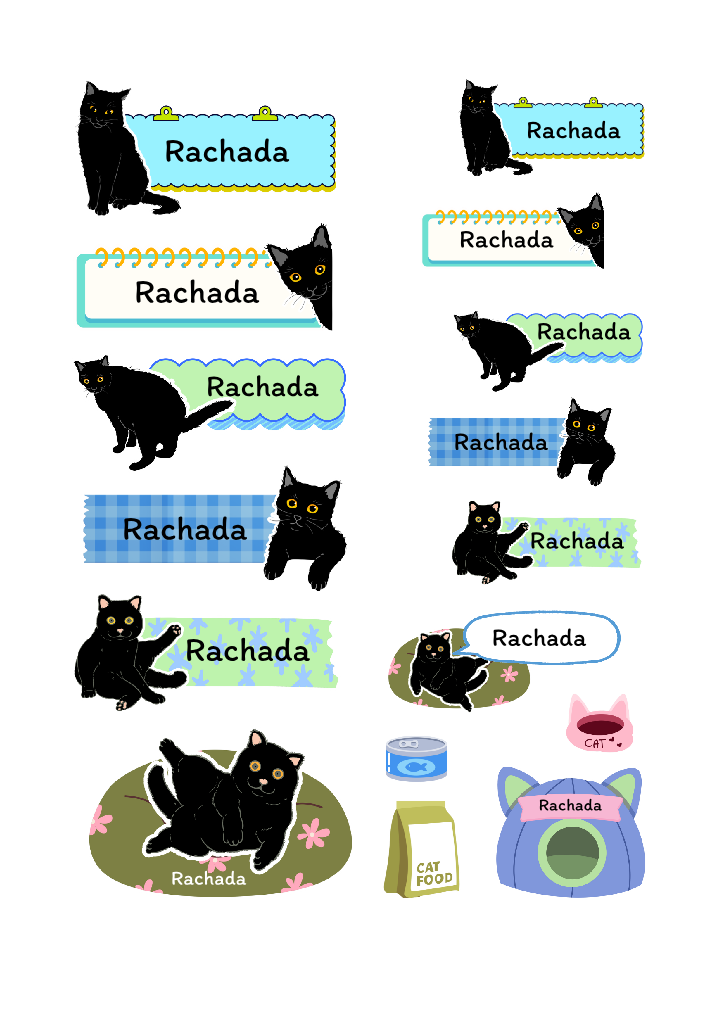 สติกเกอร์ UV DTF แมวดำ 01 | ป้ายชื่อคัสตอมใส่ชื่อได้ UV DTF Sticker Black Cat | Custom Name Label Set