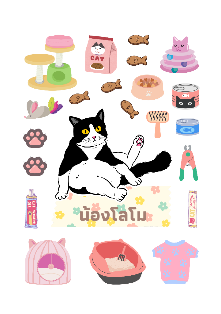 สติกเกอร์ UV DTF แมวทักซิโด้ 03 แมวลายวัว แมวขาวดำ | ป้ายชื่อคัสตอมใส่ชื่อได้ UV DTF Sticker Tuxedo Cat | Custom Name Label Set