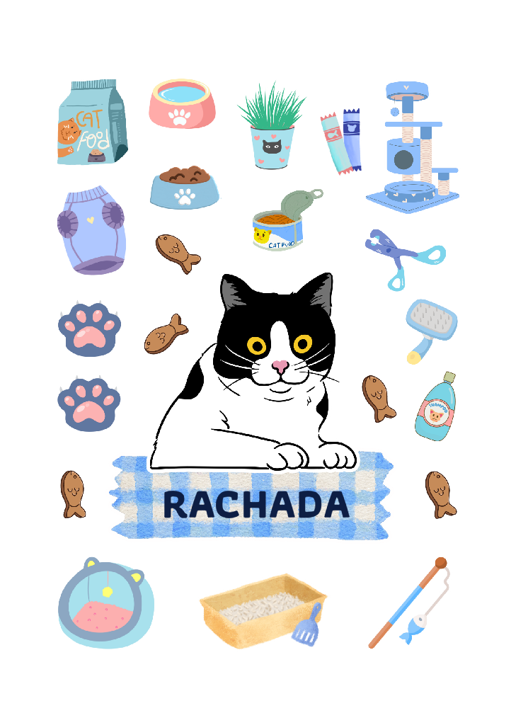 สติกเกอร์ UV DTF แมวทักซิโด้ 04 แมวลายวัว แมวขาวดำ | ป้ายชื่อคัสตอมใส่ชื่อได้ UV DTF Sticker Tuxedo Cat | Custom Name Label Set
