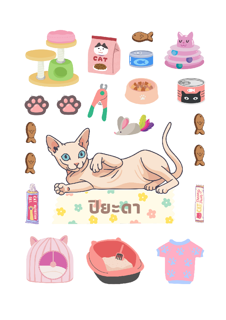 สติกเกอร์ UV DTF แมวสฟิงซ์ 01 | ป้ายชื่อคัสตอมใส่ชื่อได้ UV DTF Sticker Sphynx Cat | Custom Name Label Set