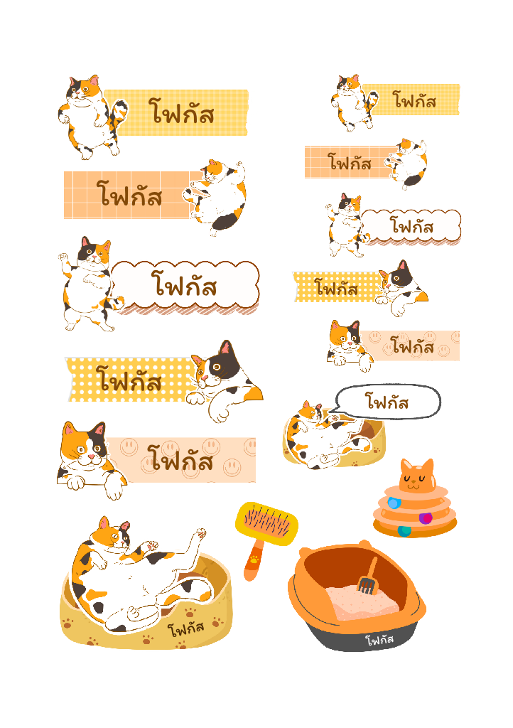 สติกเกอร์ UV DTF แมวสามสี 01 | ป้ายชื่อคัสตอมใส่ชื่อได้ UV DTF Sticker Calico Cat | Custom Name Label Set