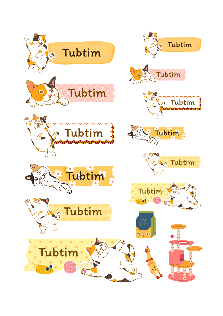สติกเกอร์ UV DTF แมวสามสี 02 | ป้ายชื่อคัสตอมใส่ชื่อได้ UV DTF Sticker Calico Cat | Custom Name Label Set