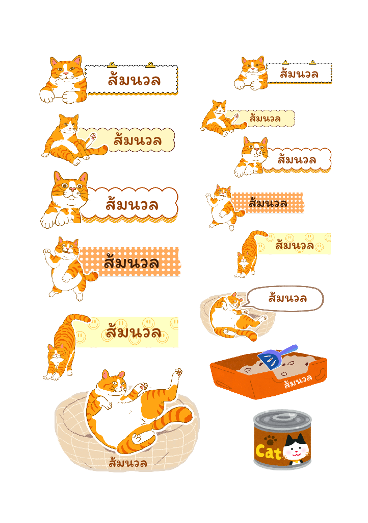 สติกเกอร์ UV DTF แมวส้ม 02 | ป้ายชื่อคัสตอมใส่ชื่อได้ UV DTF Sticker Orange Cat | Custom Name Label Set