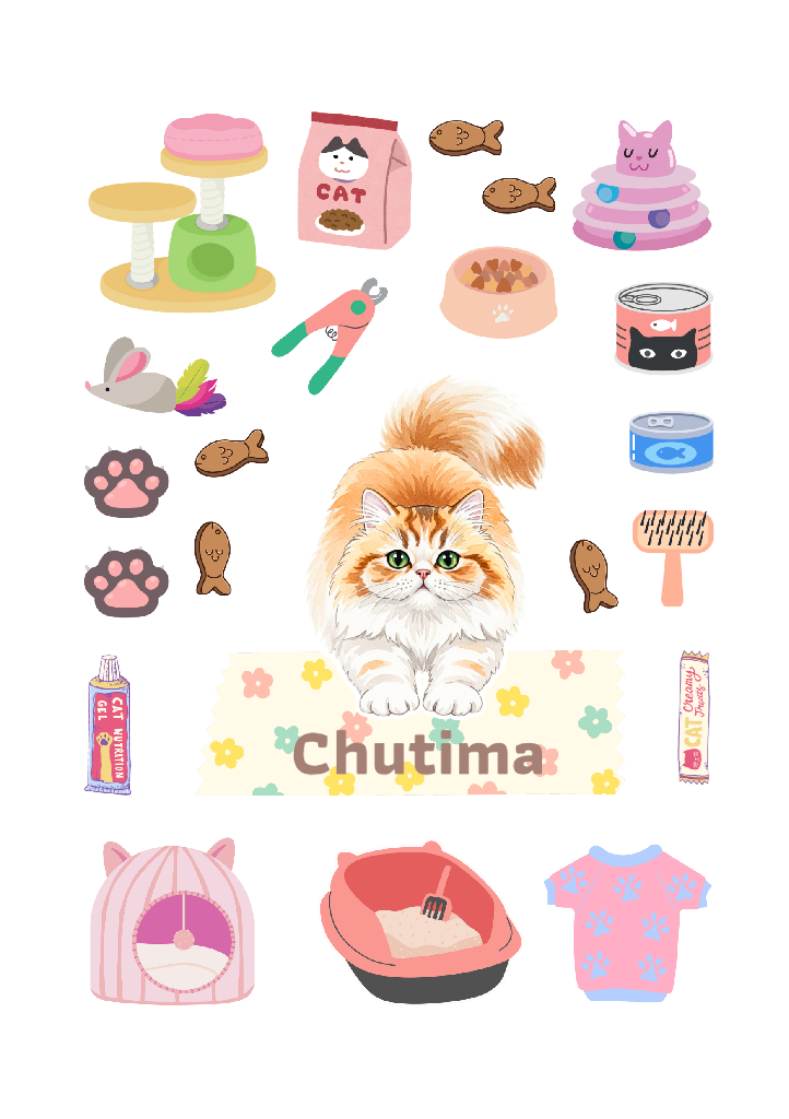 สติกเกอร์ UV DTF แมวเปอร์เซียสีส้ม 01 | ป้ายชื่อคัสตอมใส่ชื่อได้ UV DTF Sticker Orange Persian Cat | Custom Name Label Set