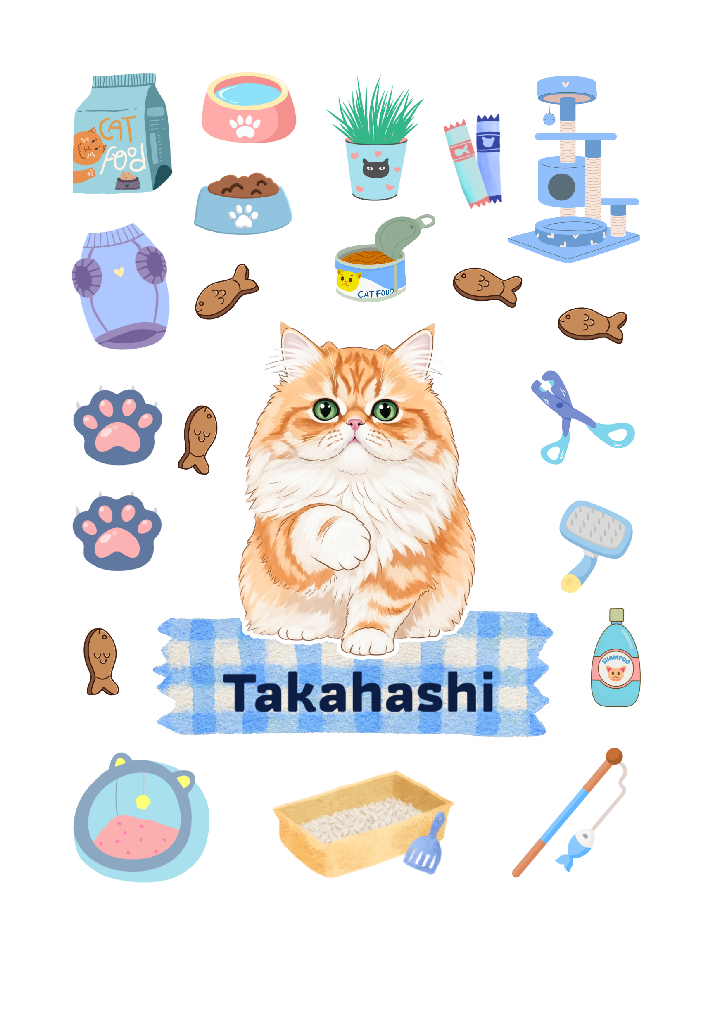สติกเกอร์ UV DTF แมวเปอร์เซียสีส้ม 01 | ป้ายชื่อคัสตอมใส่ชื่อได้ UV DTF Sticker Orange Persian Cat | Custom Name Label Set