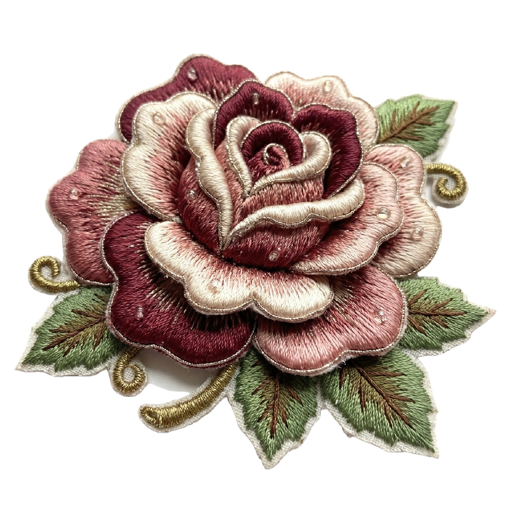 อาร์มกุหลาบวินเทจ ปักนูน 3D สุดหรู