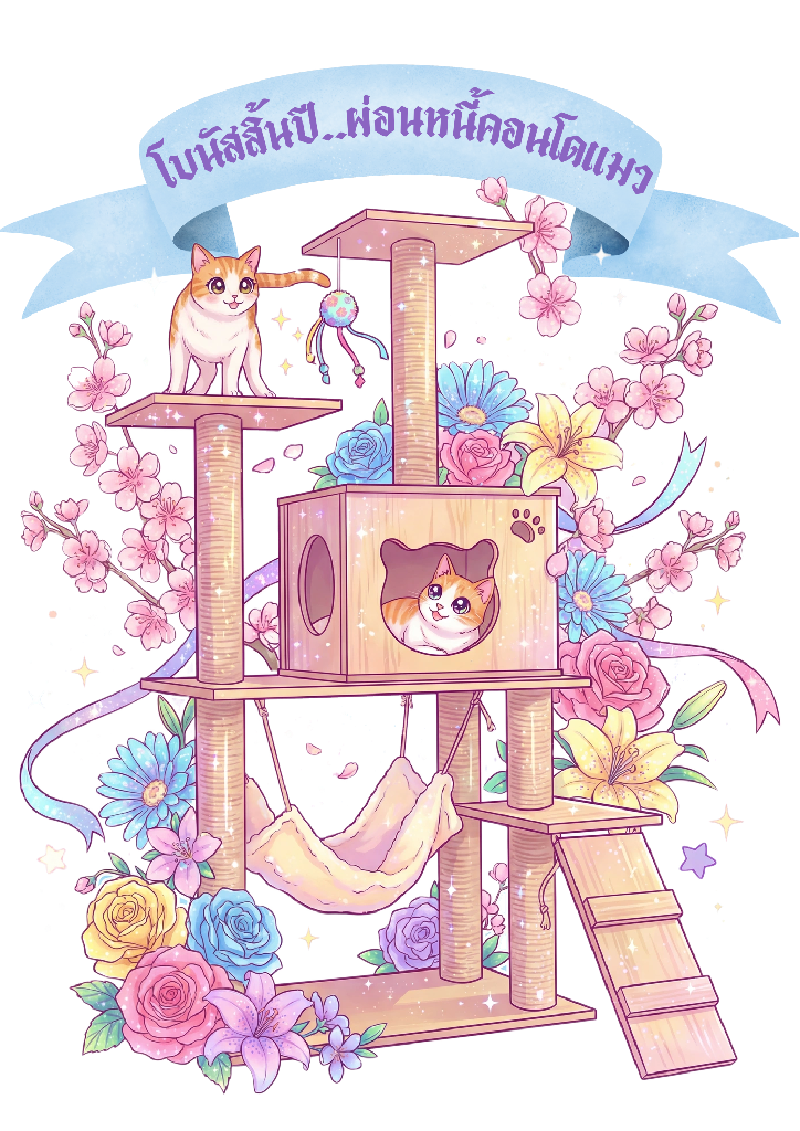 เอาใจทาสแมวสายเปย์ด้วยเสื้อยืดลายสุดน่ารักที่เข้าใจหัวอกคนเลี้ยงแมวเป็นอย่างดี มาพร้อมข้อความเรียกรอยยิ้ม “โบนัสสิ้นปี..ผ่อนหนี้คอนโดแมว” ที่ใครเห็นก็ต้องเอ็นดู ดีไซน์โดดเด่นด้วยภาพวาดสไตล์พาสเทลหวานละมุน รูปคอนโดแมวสุดหรูประดับดอกไม้และน้องเหมียวแสนซน เหมาะสำหรับสวมใส่ในวันสบายๆ หรือซื้อเป็นของขวัญสุดพิเศษให้เพื่อนชาวทาสแมว ตัวเสื้อผลิตจากเนื้อผ้าคุณภาพสูง สวมใส่สบาย ระบายอากาศได้ดี ลายพิมพ์คมชัดสีสันสดใสติดทนนาน มาร่วมประกาศความรัก(และหนี้สิน)ที่มีต่อนายท่านเหมียวด้วยเสื้อตัวนี้กันเถอะ