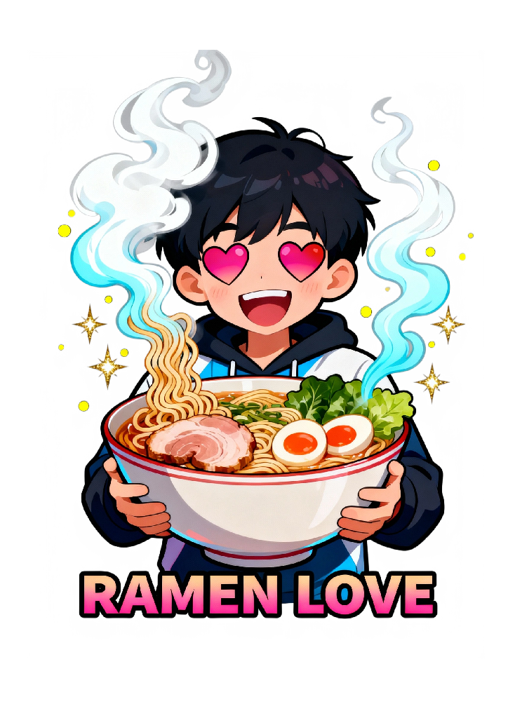 เอาใจคนรักเส้นด้วยเสื้อยืดลาย “Ramen Love” ดีไซน์สุดพิเศษที่ไม่เหมือนใคร โดดเด่นด้วยคาแรกเตอร์หนุ่มน้อยสไตล์อนิเมะที่มีดวงตาเป็นรูปหัวใจ สื่อถึงความคลั่งไคล้ในรสชาติของราเมนชามโตที่จัดเต็มทั้งเส้นและเครื่องเคียง ภาพกราฟิกมีความคมชัด สีสันสดใสสวยงาม ตัดกับพื้นหลังเสื้อได้อย่างลงตัว ผลิตจากเนื้อผ้าคุณภาพดีที่ให้สัมผัสนุ่ม สวมใส่สบาย และระบายอากาศได้เยี่ยม เหมาะสำหรับใส่ในวันพักผ่อน ใส่ไปเที่ยว หรือใส่ไปตะลุยกินร้านราเมนเจ้าโปรดของคุณ นี่คือของขวัญที่สมบูรณ์แบบสำหรับสายกินและคอการ์ตูนทุกคน