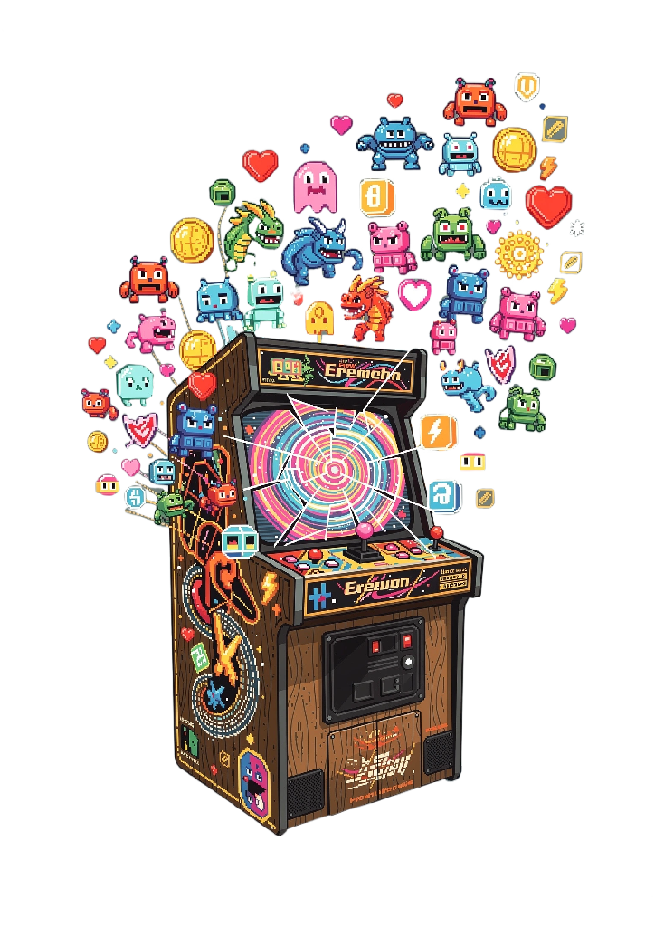ย้อนเวลาสู่ความมันส์ในยุค 90 ด้วยเสื้อยืดลายกราฟิกตู้เกมอาร์เขตระเบิดพลังพิกเซล ดีไซน์นี้โดดเด่นด้วยภาพตู้เกมคลาสสิกที่ปลดปล่อยเหล่ามอนสเตอร์และไอเทมเกมในรูปแบบ 8-bit สีสันสดใสออกมาอย่างจุใจ รายละเอียดคมชัดสวยงาม เต็มตา เหมาะสำหรับเกมเมอร์และผู้ที่ชื่นชอบศิลปะแนว Pixel Art ตัวเสื้อผลิตจากเนื้อผ้าคุณภาพดี สวมใส่สบาย ระบายอากาศได้ดีเยี่ยม ลวดลายสกรีนแน่น ทนทาน ไม่หลุดลอกง่ายแม้ผ่านการซักหลายครั้ง สวมใส่ได้ทุกโอกาสไม่ว่าจะไปเที่ยวหรือนัดเล่นเกมกับเพื่อน เป็นไอเท็มแฟชั่นสุดเท่ที่บ่งบอกความเป็นตัวตนของคุณได้อย่างชัดเจน