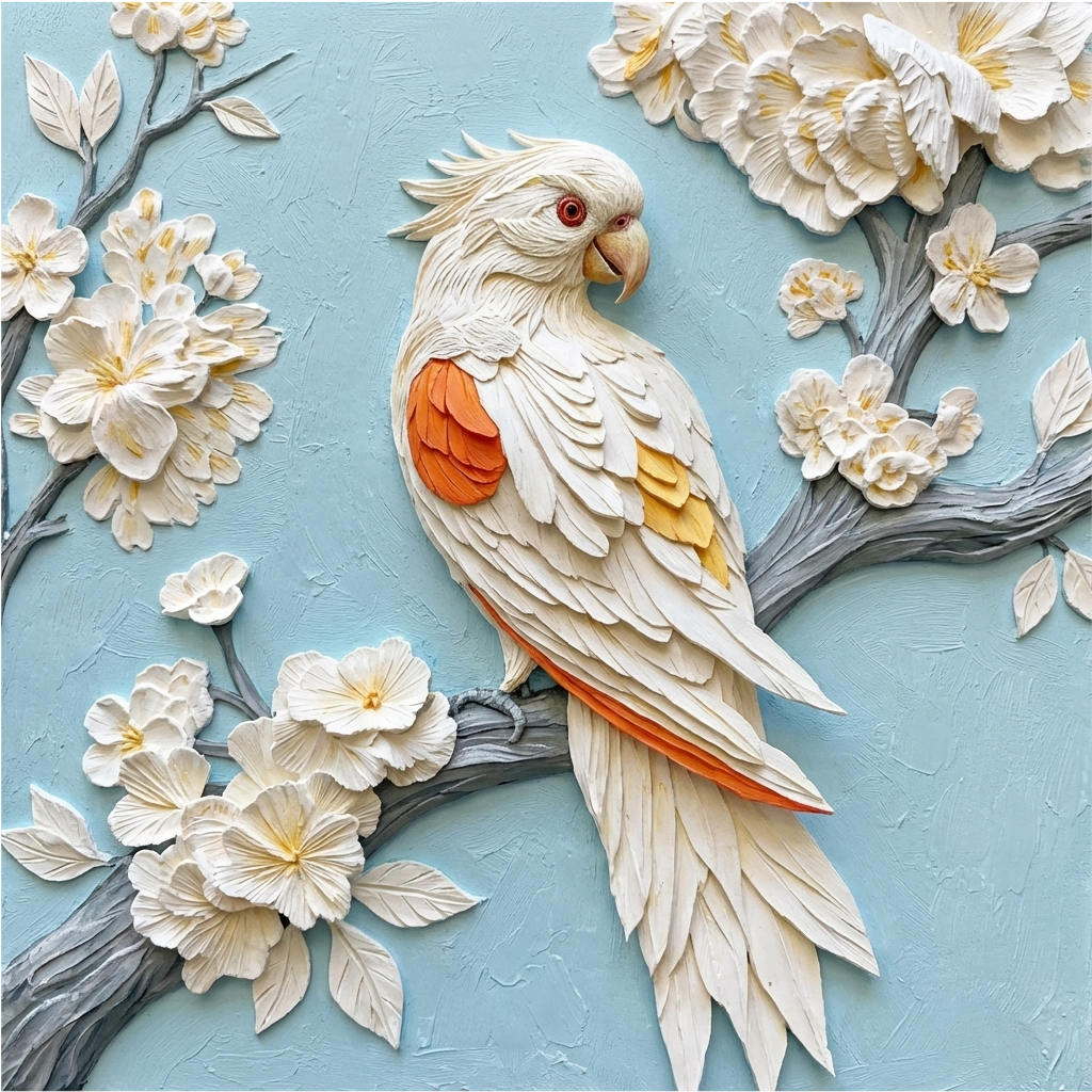 ยกระดับสไตล์ของคุณด้วย 3D Patch ลายนกกระตั้วสีขาวแสนสง่างามที่เกาะอยู่บนกิ่งไม้ ดีไซน์นี้โดดเด่นด้วยเทคนิคภาพศิลปะแบบนูนต่ำ (Bas-relief) ที่ให้มิติความลึกและรายละเอียดของขนนกที่สมจริง ตัดกับพื้นหลังสีฟ้าพาสเทลและดอกไม้สีขาวสะอาดตาอย่างลงตัว เหมาะสำหรับนำไปติดตกแต่งเสื้อแจ็คเก็ต กระเป๋าเป้ หรือหมวก เพื่อเพิ่มความอาร์ตและความหรูหราให้กับของใช้ส่วนตัว เป็นชิ้นงานสำเร็จรูปที่ออกแบบมาอย่างพิถีพิถัน สวยงามจบในตัวโดยไม่ต้องปรับแต่งใดๆ เปลี่ยนไอเท็มธรรมดาให้กลายเป็นงานศิลปะที่พกพาไปได้ทุกที่