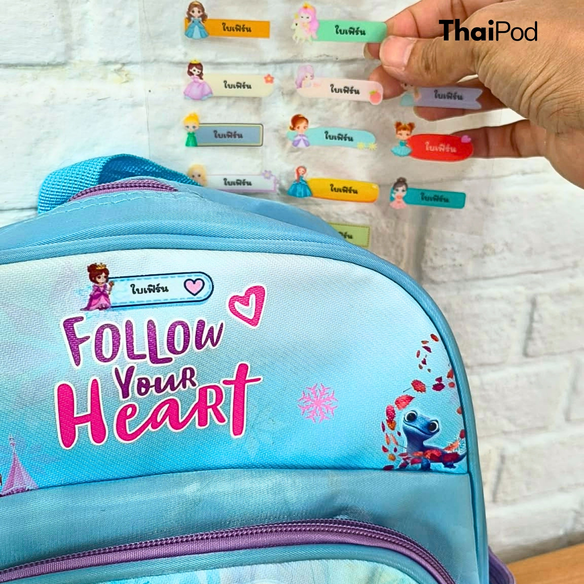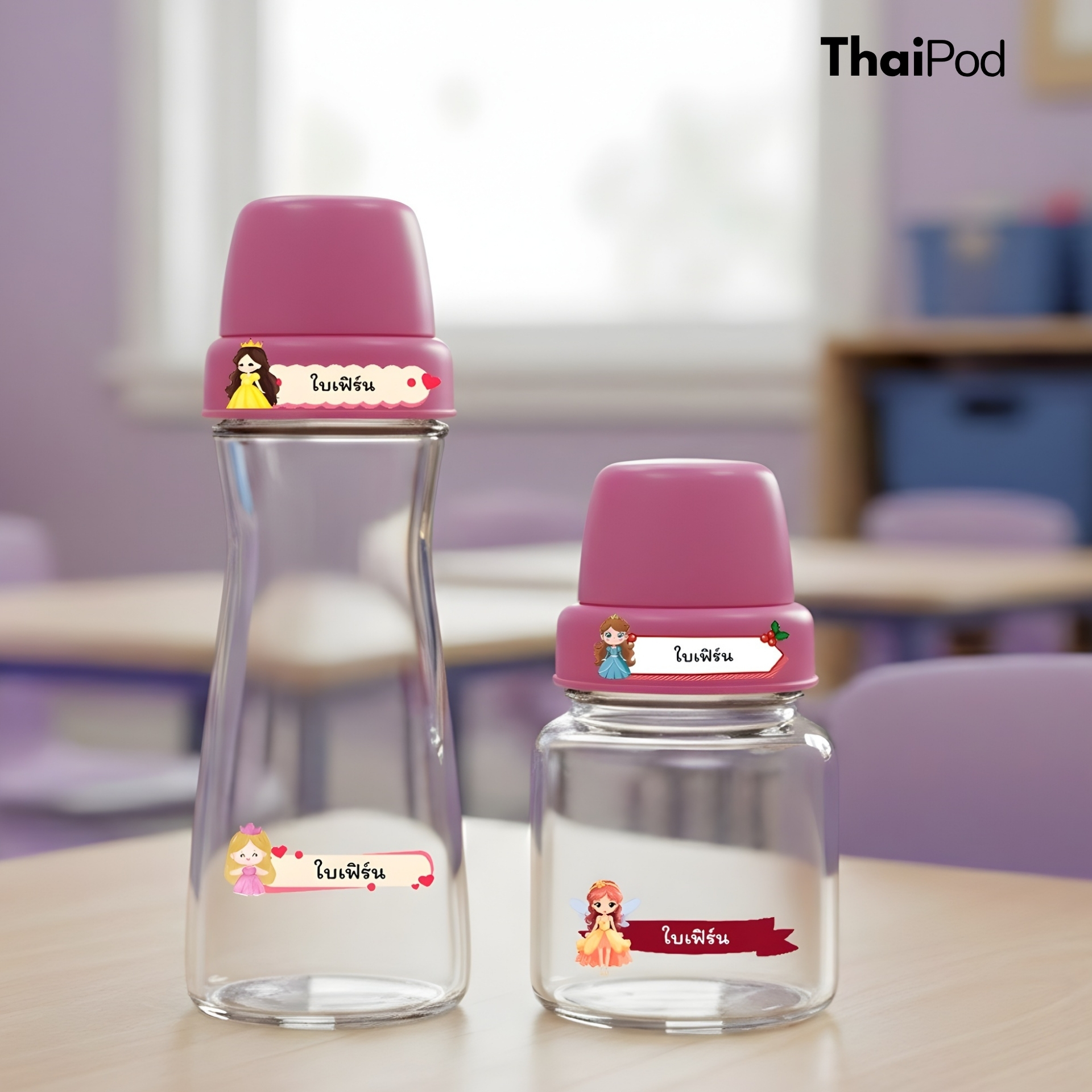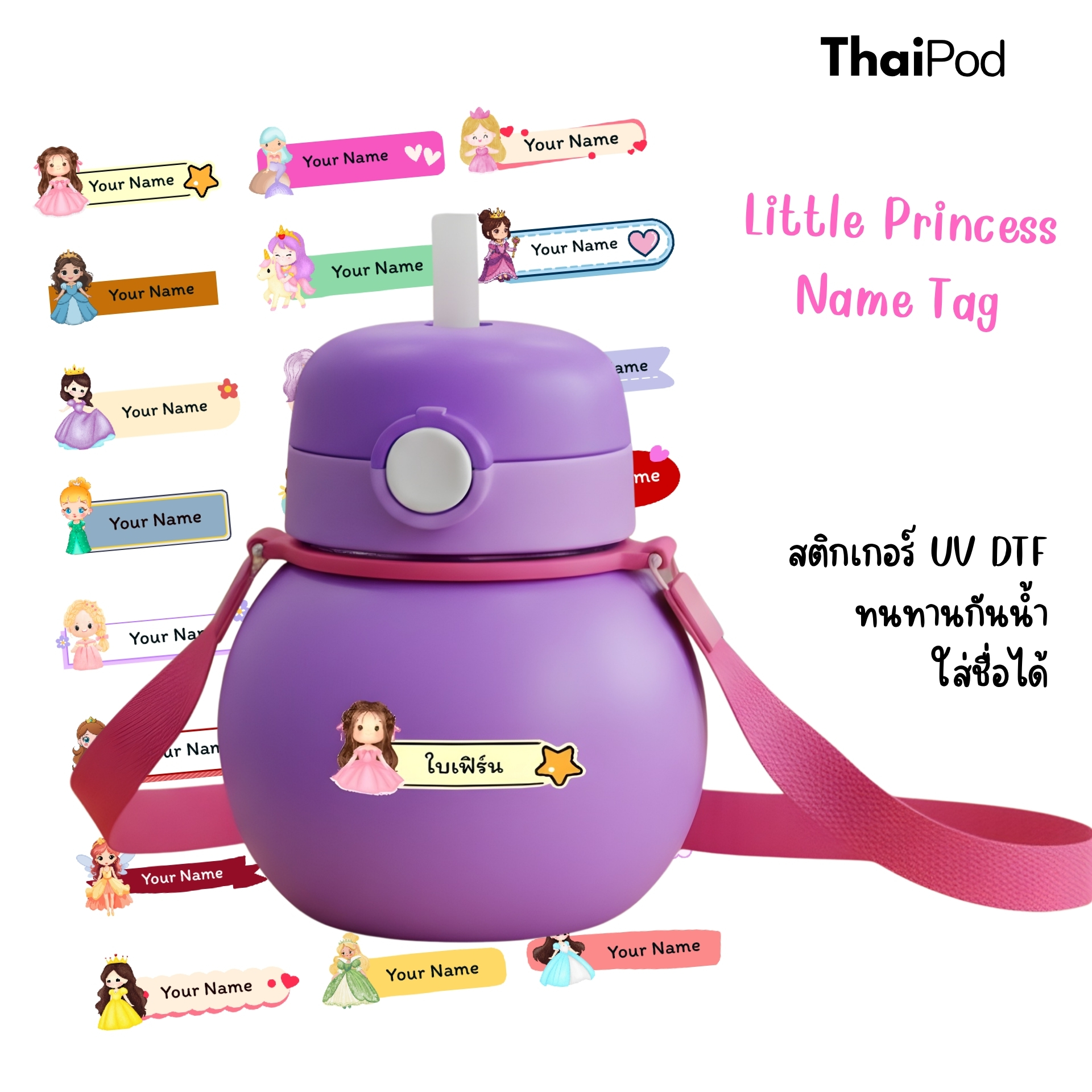 Premium NameTag สติกเกอร์ชื่อเด็ก UV DTF นูน วาว กันน้ำ ติดรองเท้า ขวดน้ำ กล่องข้าว ของใช้ไปโรงเรียน แบบ Little Princess Name Tags