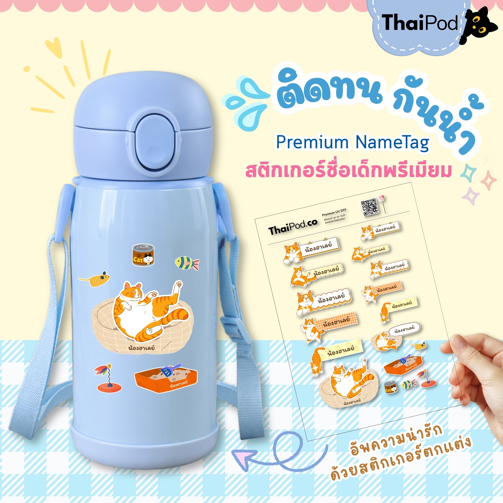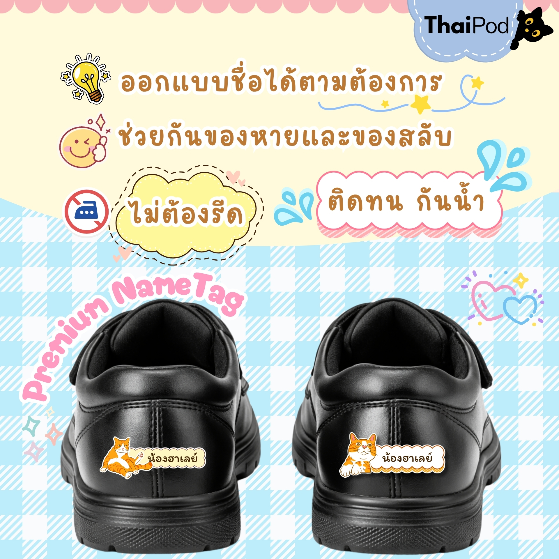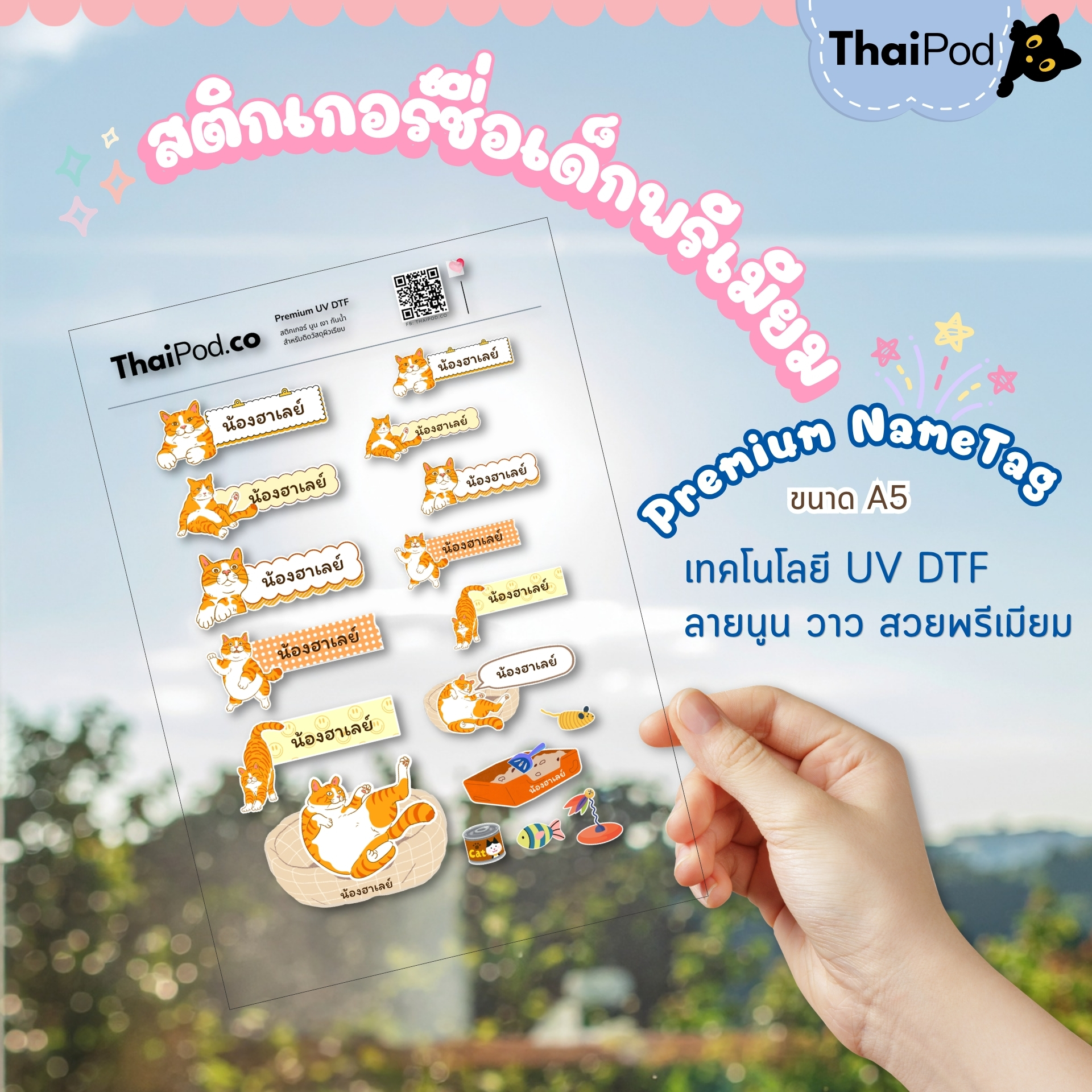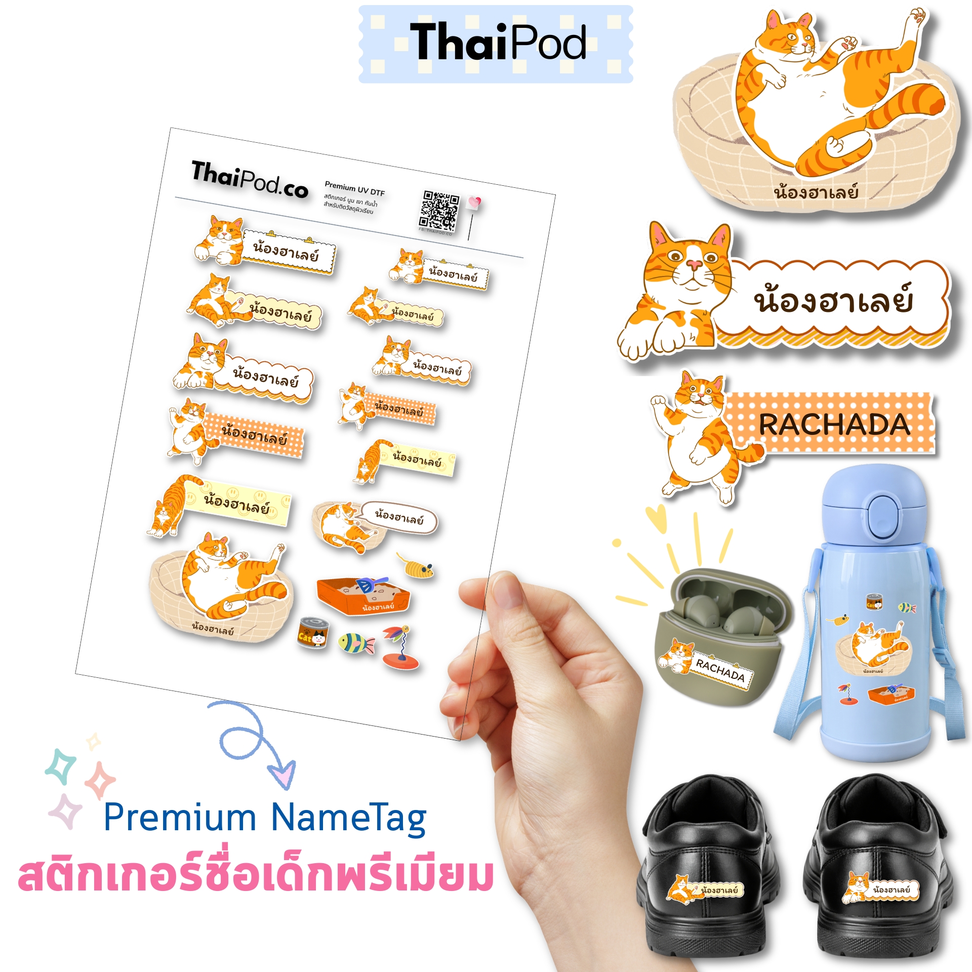 Premium NameTag สติกเกอร์ชื่อเด็ก UV DTF นูน วาว กันน้ำ ติดรองเท้า ขวดน้ำ กล่องข้าว ของใช้ไปโรงเรียน ลาย Orang cat set 02