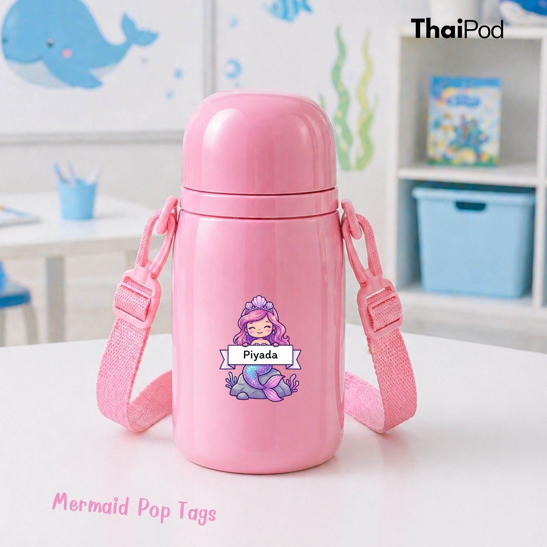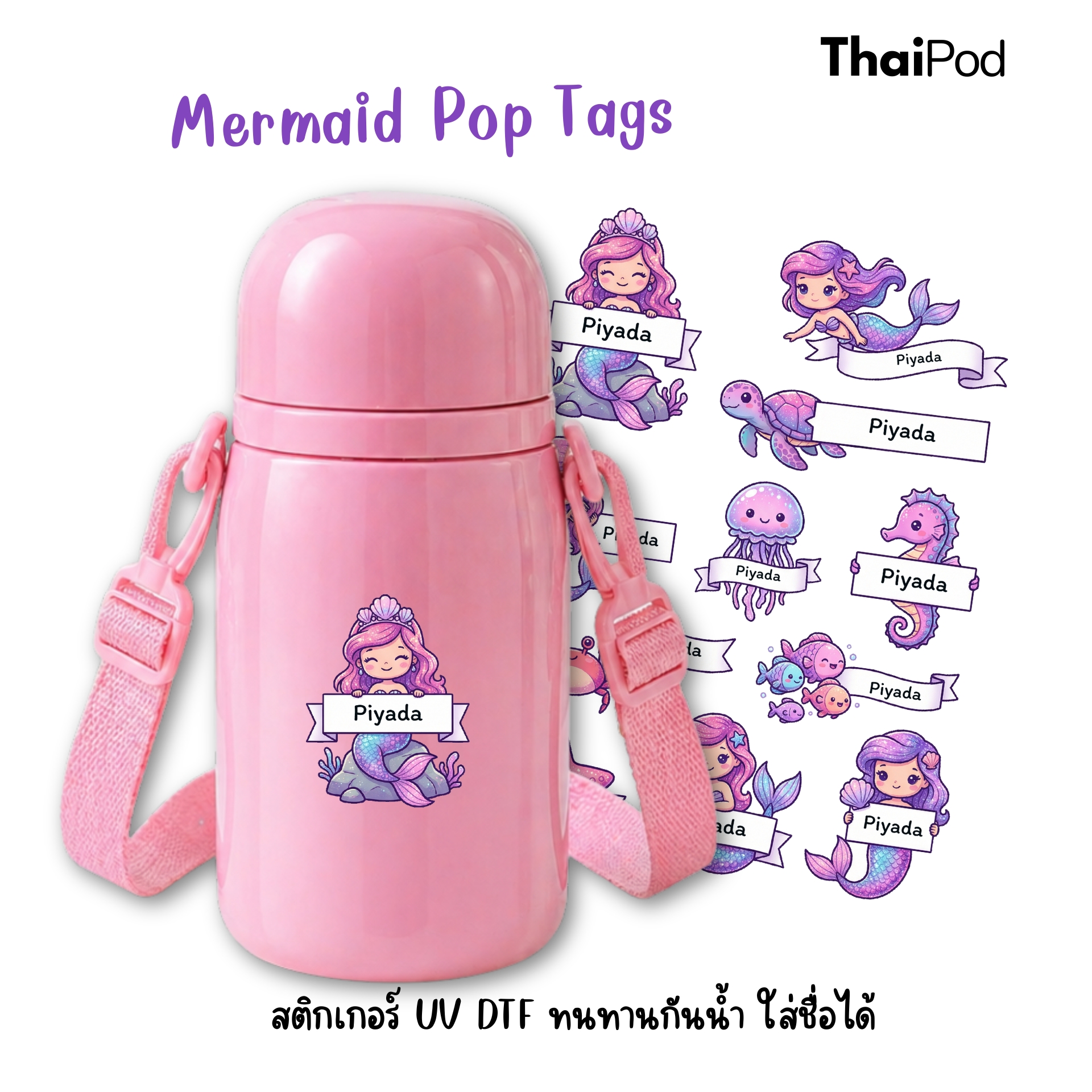 Premium NameTag สติกเกอร์ชื่อเด็ก UV DTF นูน วาว กันน้ำ ติดรองเท้า ขวดน้ำ กล่องข้าว ของใช้ไปโรงเรียน ลาย Mermaid Pop Tags