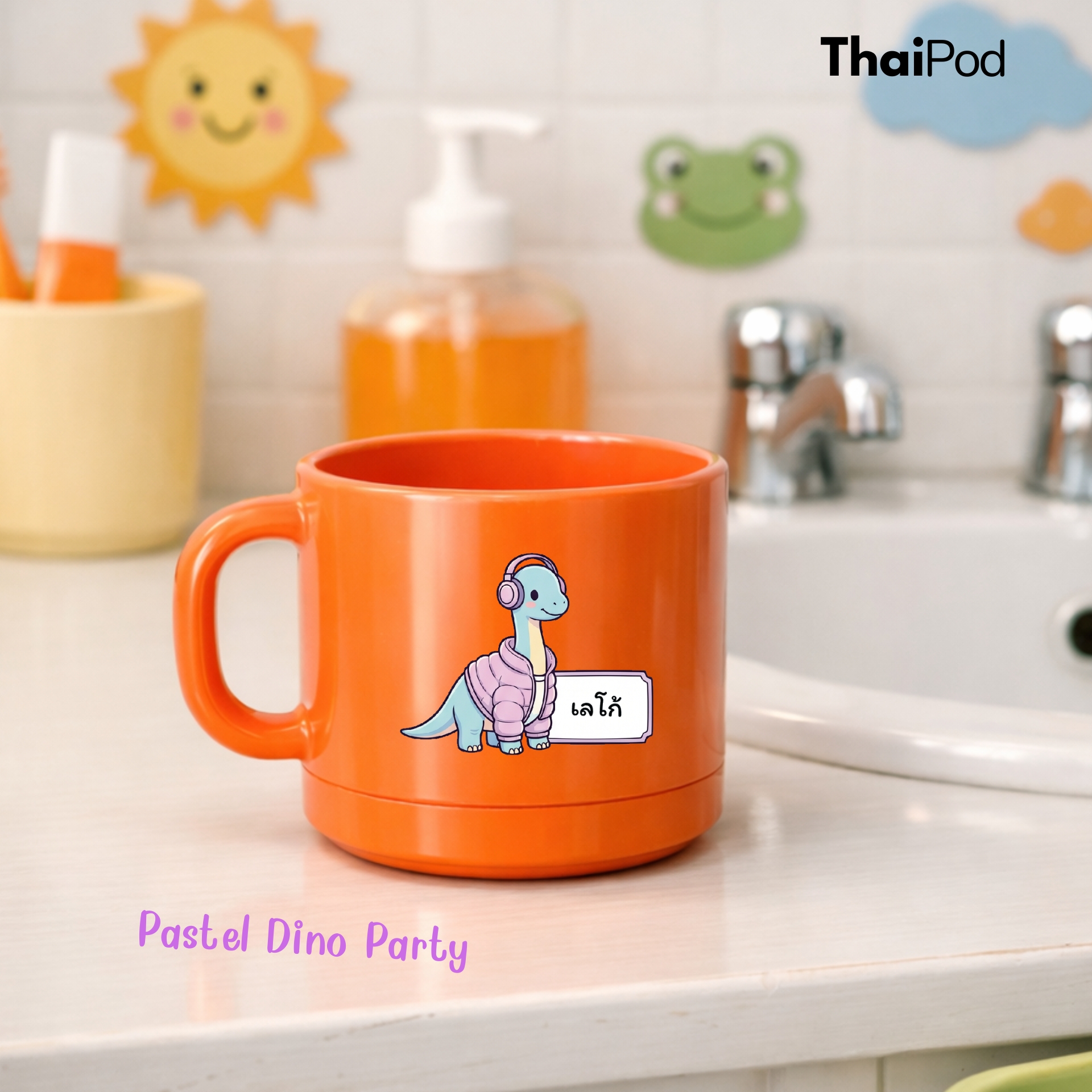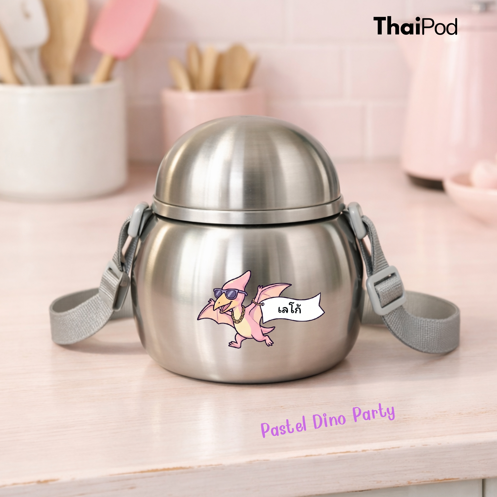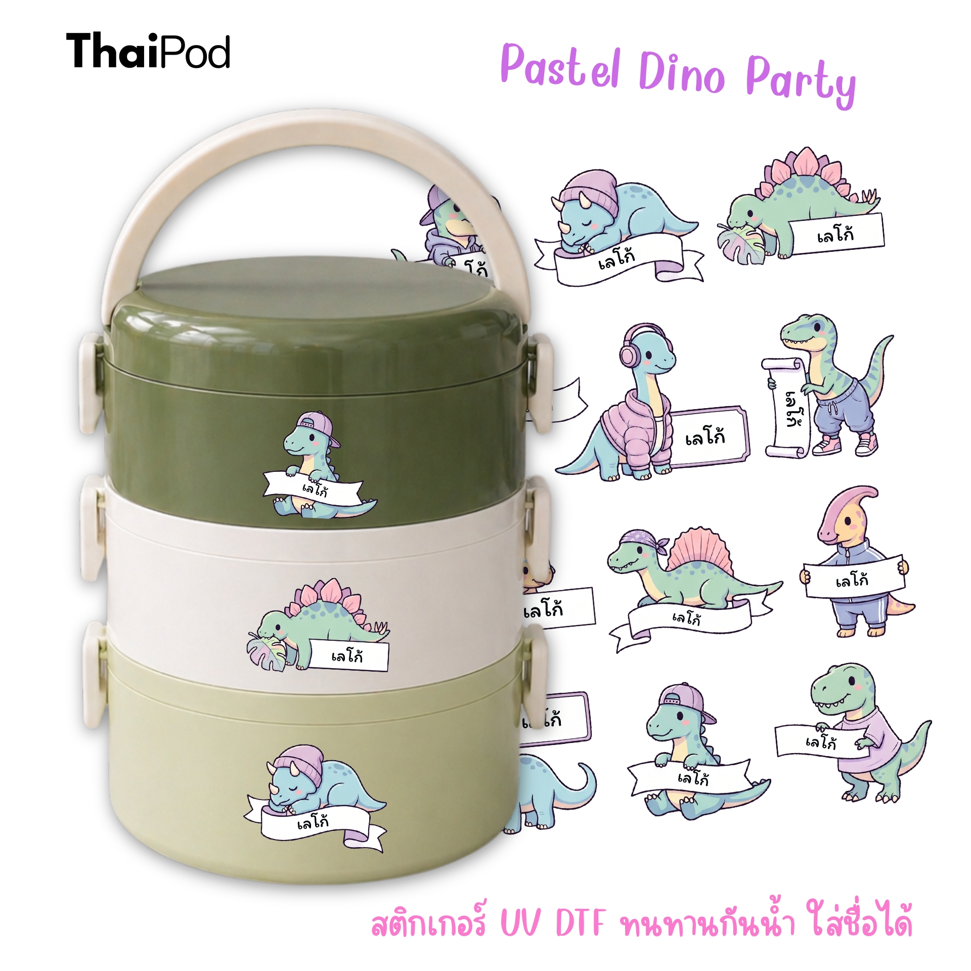 Premium NameTag สติกเกอร์ชื่อเด็ก UV DTF นูน วาว กันน้ำ ติดรองเท้า ขวดน้ำ กล่องข้าว ของใช้ไปโรงเรียน ลาย Pastel Dino Party